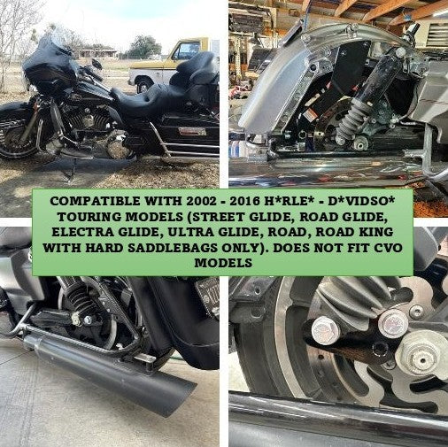 Compatibility: 2002-2016 H*rle*-D*vidso* Touring models (Street Glide, Road Glide, Electra Glide, Ultra Glide, Road King with hard saddlebags only). Does not fit CVO models.