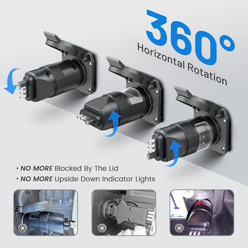 ✅Durable, Rotatable, and Road-Ready: Designed with a 360° swivel head to adapt to any socket position, it prevents cable strain and fits easily in tight spaces. The IP67 waterproof ABS housing and brass terminals withstand rain, dirt, and vibration, ideal for roadside use and long-haul drivers.