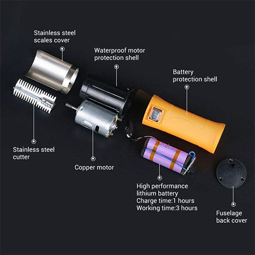 ✅POWERFUL: This tool makes removing fish scales much easier and faster than a knife. It has a powerful motor with a stainless-steel blade and a built-in rechargeable 2,000mAh lithium-ion battery that can clean up to 100 fish per charge, completing your tasks effortlessly.