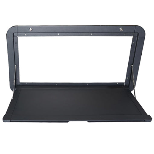 This is a great product. Easy to install, and gives you a table that's always there and ready to go. No finding and setting up a wobbly camp table. Installation is a snap. –Craig
