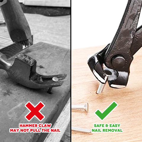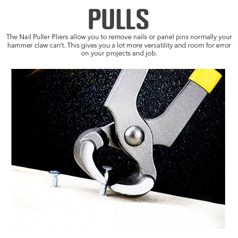 ✅PULLS: The Nail Puller Pliers allow you to remove nails or panel pins normally your hammer claw can’t. This gives you a lot more versatility and room for error on your projects and job. The jaw has a clearance of 24mm giving you a lot of ways to orient yourself to the best position to remove the fastener.