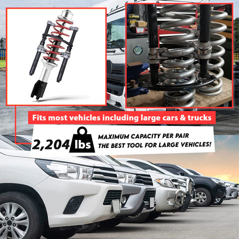 ✅CONVENIENT: For removing struts and coil springs, made to reduce tool flexing, bending, warping, and bears 2,204 lbs maximum capacity per pair. These coil spring compressors are usable for almost any vehicle make including large cars and trucks.